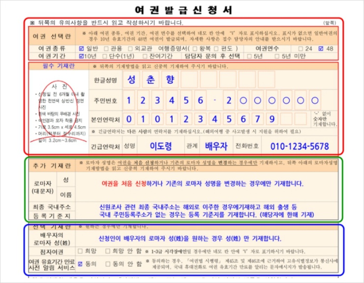 특히 여권에 기재될 개인정보는 오류가 없어야 하며, 꼼꼼히 확인 후 제출하셔야 합니다.