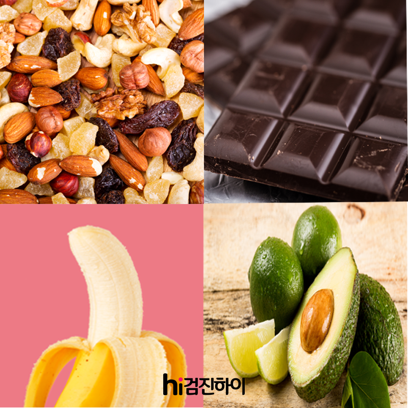 녹색 채소, 견과류, 통곡물, 바나나, 아보카도 등 다양한 식품에서 마그네슘을 섭취할 수 있습니다.